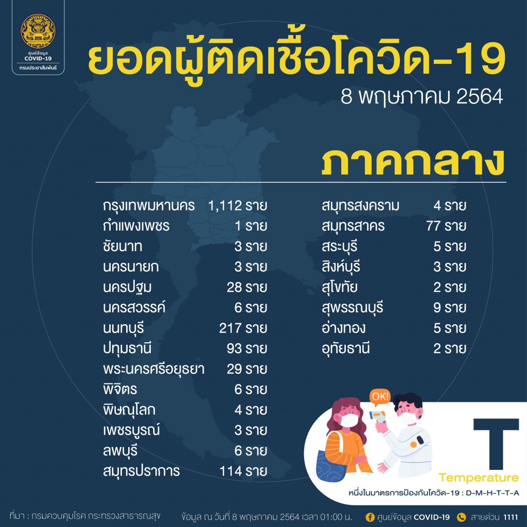 ‘กทม.’ ติดเชื้อวันนี้ พุ่ง 1,112 ราย นนทบุรีหนัก 217 คน ‘สมุทรปราการ-ประจวบฯ’ ยังแตะร้อย