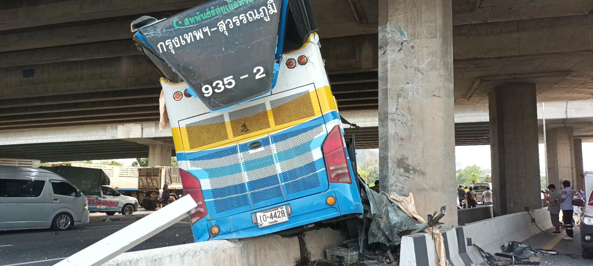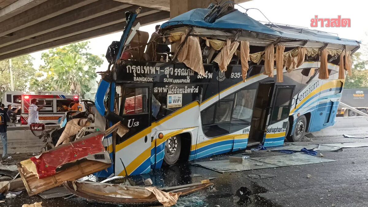 ดับอีก 1 ราย เหยื่อรถทัวร์ 2 ชั้น ชนตอม่อหน้า ห้างดังสระบุรี หลังอาการโคม่า เลือดคลั่งในสมอง-ปอด รวมเสียชีวิต 9 ราย บาดเจ็บ 22 คน