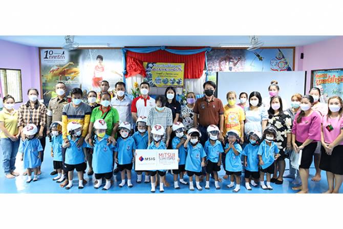 ประกันภัยมิตซุยฯ ส่งมอบหมวกนิรภัยสำหรับเด็ก ณ ศูนย์พัฒนาเด็กเล็กวัดเสาธงนอก