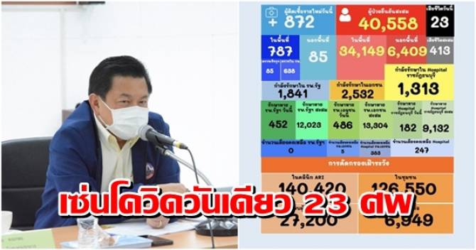 และสำหรับ ผู้ป่วยรายใหม่ที่เพิ่ม จำนวน 872 ราย ในพื้นที่ จำนวน 787 ราย มีอำเภอเมือง 326 ราย อำเภอพระประแดง 200 ราย อำเภอบางพลี 154 ราย อำเภอพระสมุทรเจดีย์ 48 ราย อำเภอบางเสาธง 34 ราย และอำเภอบางบ่อ 25 ราย รับมารักษาต่อในจังหวัดสมุทรปราการ 85 ราย มีผู้เสียชีวิต 23 ราย