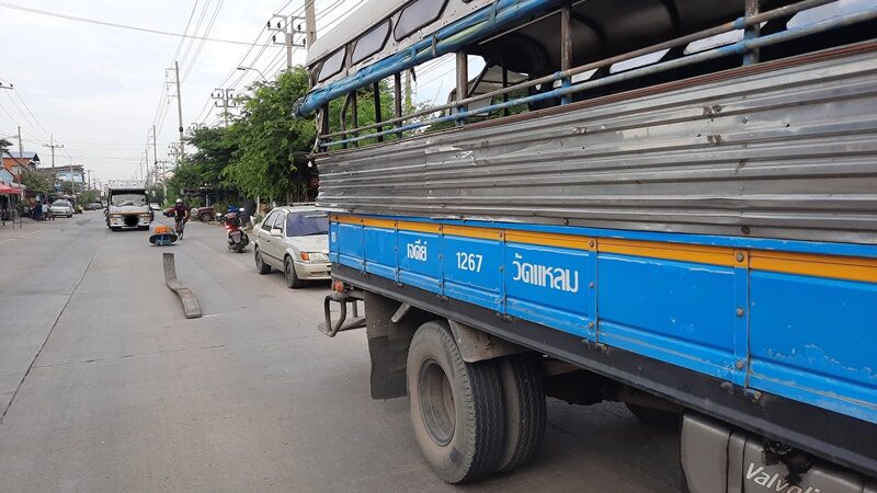 ด้านคนขับรถบรรทุกพ่วง ให้การกับเจ้าหน้าที่ตำรวจว่า ตนได้รับรถบรรทุกเหล็กคันนี้อยู่มาจากอู่จอดรถภายในซอยวัดใหญ่เพื่อจะนำเหล็กทั้งหมดไปส่งให้ลูกค้าในโรงเหล็กย่านสำโรง เมื่อมาถึงที่เกิดเหตุคาดว่าเหล็กยื่นออกไปนอกตัวรถทำให้เกี่ยวกับรถสองแถวโดยสารจนเหล็กหล่นทำให้รถจักรยานยนต์ที่วิ่งตามมาชนจนล้มได้รับบาดเจ็บ ทั้งที่ตนได้ใช้โซ่ล่ามมัดล็อกอย่างดี ทั้งท้ายรถ กลางรถ แต่มาเกิดอุบัติเหตุได้