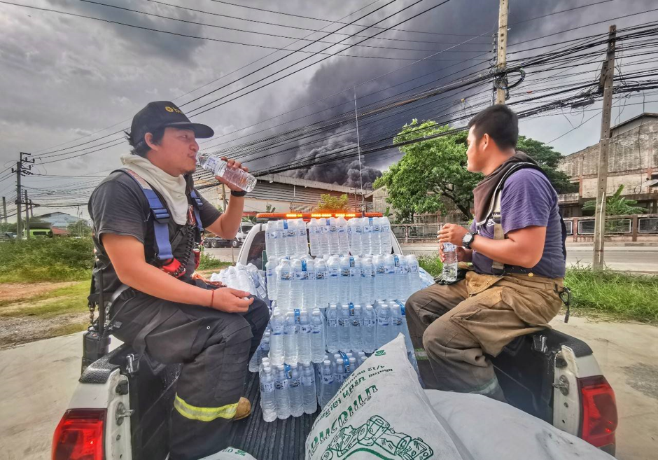 สิงห์อาสาเกาะติดสถานการณ์ ส่งน้ำดื่มสิงห์ และอาหารพร้อมทาน พร้อมสนับสนุนการทำงานของเจ้าหน้าที่และให้การช่วยเหลือพี่น้องประชาชนตลอด 24 ชั่วโมง ในพื้นที่ไฟไหม้ อ.บางพลี จ.สมุทรปราการ