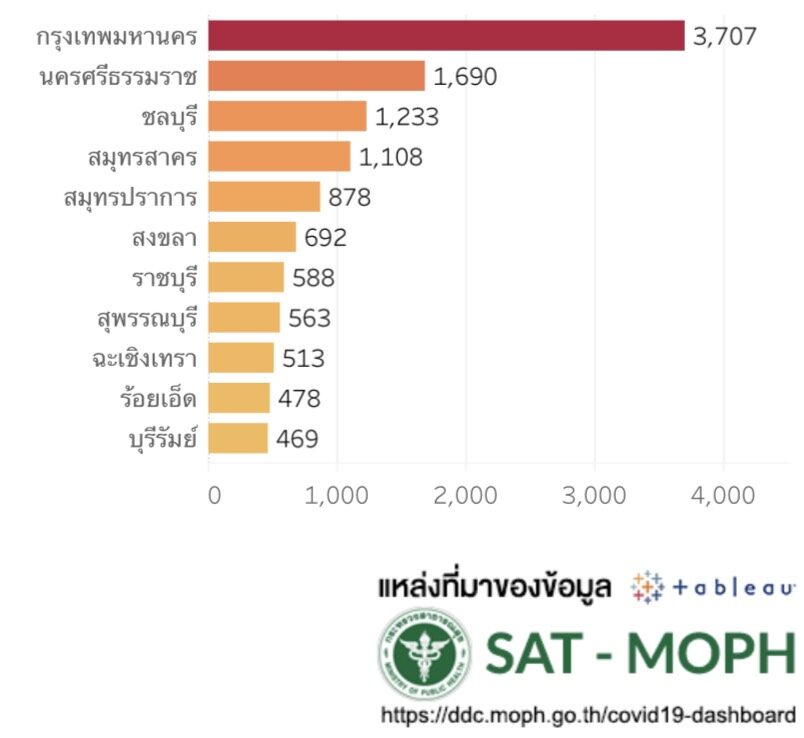ขณะที่ผู้ติดเชื้อเข้าข่ายจากผลแอนติเจน เทสต์ คิท (เอทีเค) อีก 21,244 ราย อาการหนักใช้ท่อช่วยหายใจ 504 ราย ผู้ป่วยปอดอักเสบ 1,402 ราย โดยจังหวัดที่มีจำนวนผู้ติดเชื้อสูงสุด ได้แก่ กรุงเทพฯ นครศรีธรรมราช ชลบุรี สมุทรสาคร สมุทรปราการ สงขลา ราชบุรี สุพรรณบุรี ฉะเชิงเทรา ร้อยเอ็ด และบุรีรัมย์