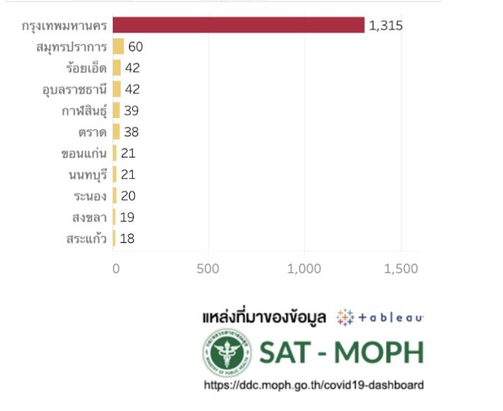 ขณะที่ ผู้ติดเชื้อเข้าข่ายจากผลแอนติเจน เทสต์ คิท (เอทีเค) อีก 3,797 ราย อาการหนักใช้ท่อช่วยหายใจ 288 ราย ผู้ป่วยปอดอักเสบ 598 ราย โดยจังหวัดที่มีจำนวนผู้ติดเชื้อสูงสุด ได้แก่ กรุงเทพฯ สมุทรปราการ ร้อยเอ็ด อุบลราชธานี กาฬสินธุ์ ตราด ขอนแก่น นนทบุรี ระนอง สงขลา และสระแก้ว